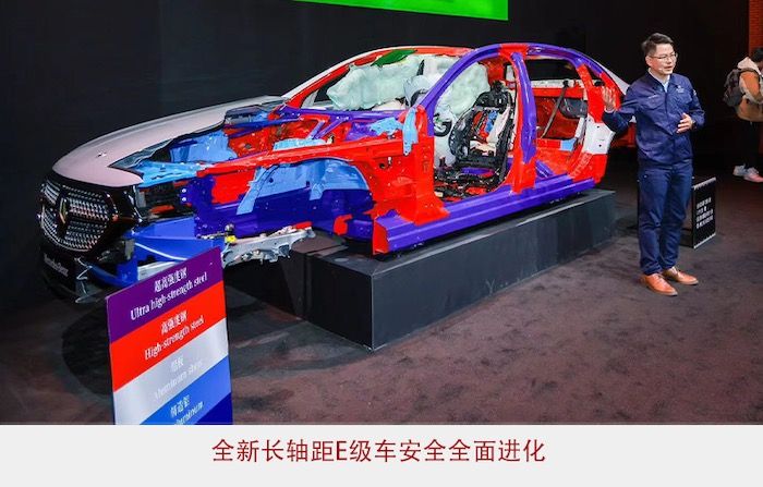 全新长轴距E级车安全全面进化,搭载采用全球统一开发策略的钢铝混合车身,白车身的碰撞承载区、发动机盖、车门板和行李箱盖等部分车身覆盖件,采用航空级挤压成型铝和压铸铝,确保在碰撞中能够有效吸收和分散冲击力。白车身框架结构、底板和车身侧围碰撞区等部位采用不同强度的钢材,高强度钢使用比例超过77%,其中包含20%的超高强度钢,实现高强度的安全保护性能。全新长轴距E级车也配备了Pre-Safe®预防性安全保护系统,在碰撞发生前可调直座椅靠背、收紧安全带、关闭天窗甚至将乘客推向远离车门的位置、发出粉红噪音保护耳膜,由此全方位守护全家出行安全。