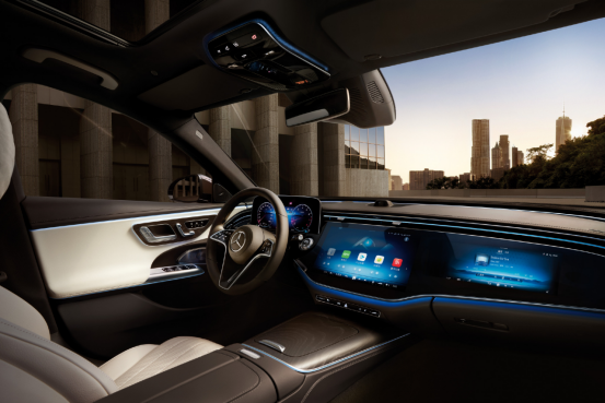 内饰方面,新车采用了最新的家族式设计风格,不过并没有采用熟悉的三联屏设计,而是配备了比较传统的悬浮式液晶仪表,配合上14.4英寸中控屏与12.3英寸副驾娱乐屏,同样是彰显出了十足的科技感。此外,新车还搭载了高通8295智能座舱芯片,结合上最新的MBUX智能人机交互系统,智能化体验更上一台阶,更加贴近国内用户需求。