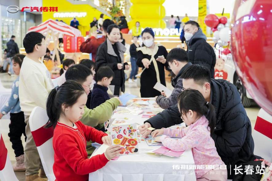 品鉴派对俨然一场盛大的家庭亲子聚会,美陈拍照集赞、亲子DIY贺卡、车内盲盒寻宝、新年许愿墙、糖人制作等诸多丰富多彩的互动环节,以满爱之家的温情,真切传达了传祺E8为一家人带来的快乐、温馨和幸福。