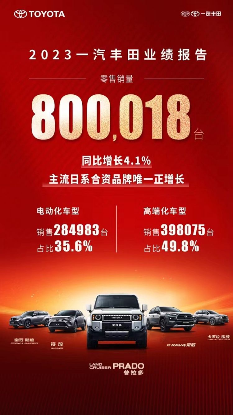 2024年,一汽丰田将继续与广大用户携手同行,共启新程,掀开美好出行生活新篇章。