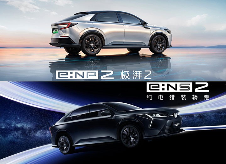 从这次工信部所揭露的信息来看,透过资料可以知道 e:NP2/e:NS2 设定在中大型休旅级别,车身尺寸依序为车长 4,787mm~4,788mm、车宽 1,838mm、车高 1,570mm、轴距 2,735mm,采 18 吋轮圈,车长甚至比 CR-V 稍微大一点,更是较 e:NP1/e:NS1 近 4.4 米的车长大上一些,而在外观上两款车型各有属于自己的风格。