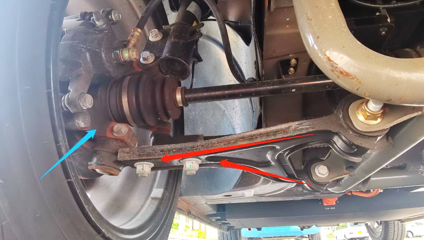 带有止推杆的整体桥半独立悬架,主打的是结构简单,吸收后电机所带来的的扭矩震颤。