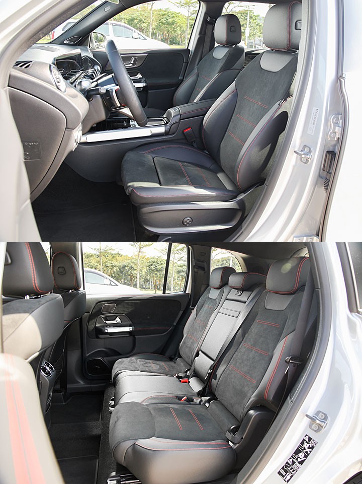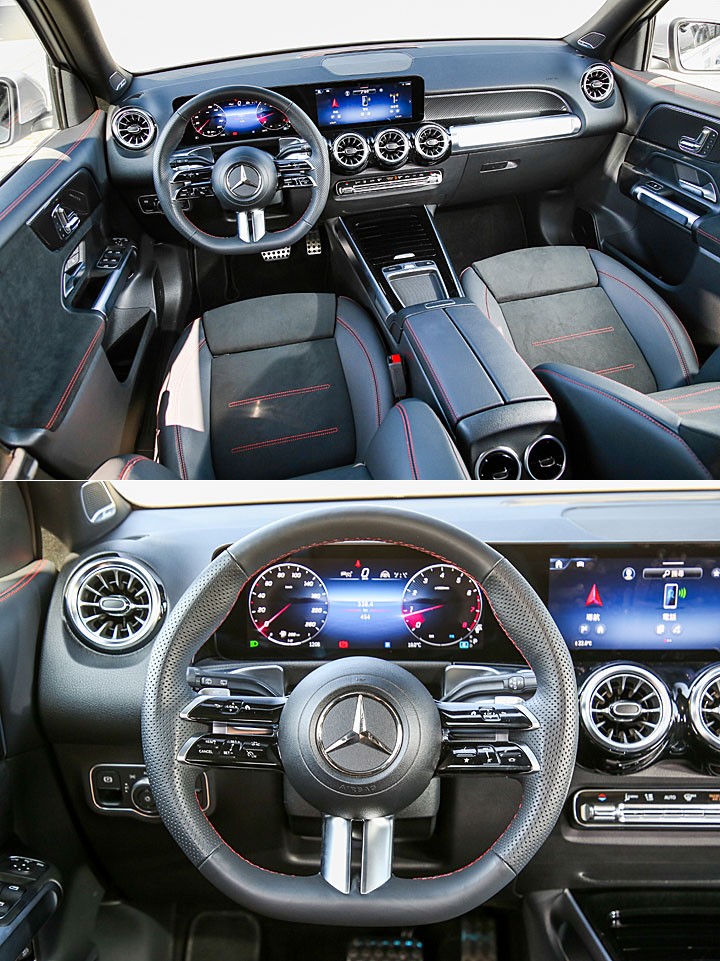 而在内饰设定上,小改款 GLB 车系最明显的变动,便是换上了新型式的三幅式方向盘配置,此回试驾的 GLB 200 车型,同样标配强调性能风格的 AMG Line 内饰套件,且具有采 Nappa 真皮包覆的 AMG 高性能平底跑车方向盘,并将双 10.25 吋仪表及中控荧幕列为车型标准配备,并拥有重新设计的中控台置物空间,以及新增盖板设计的手机无线充电放置区域,同时前双座椅皆具备电动调整及记忆功能。