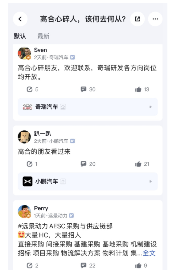 离谱的是,当高合停工停产的消息一出,不少车企更是“堵着”门口开始明目张胆的挖人,目前了解到的已经有包括比亚迪、理想、光束、国新新能源等不少车企,当然,他们也有自己的方式,就是通过建立HR群的方式,邀请有意者进行面试。这一副树倒猢狲散的架势,高合已经基本进入了倒计时阶段。