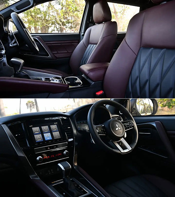 泰规小改款 Pajero Sport 车系在外观的变化幅度并未很大,不一样之处在于车头采用新设计的 6 边形蜂巢式格栅,同时前后保险杠也做了些调整,足下采用新款 18 吋轮圈,Elite 车型还做了黑化设定,并辅以黑色后视镜以及黑色门把手,至于离地间隙则从 217mm 增加至 222mm。内饰部分,Ultra 和 Elite 车型采用黑红组合的皮革内饰,不过 Prime 车型则采用全黑配色,而方向盘使用了全新三幅式设计,该组方向盘款式也应用在 XForce、Triton、Xpander 等新世代三菱车型。