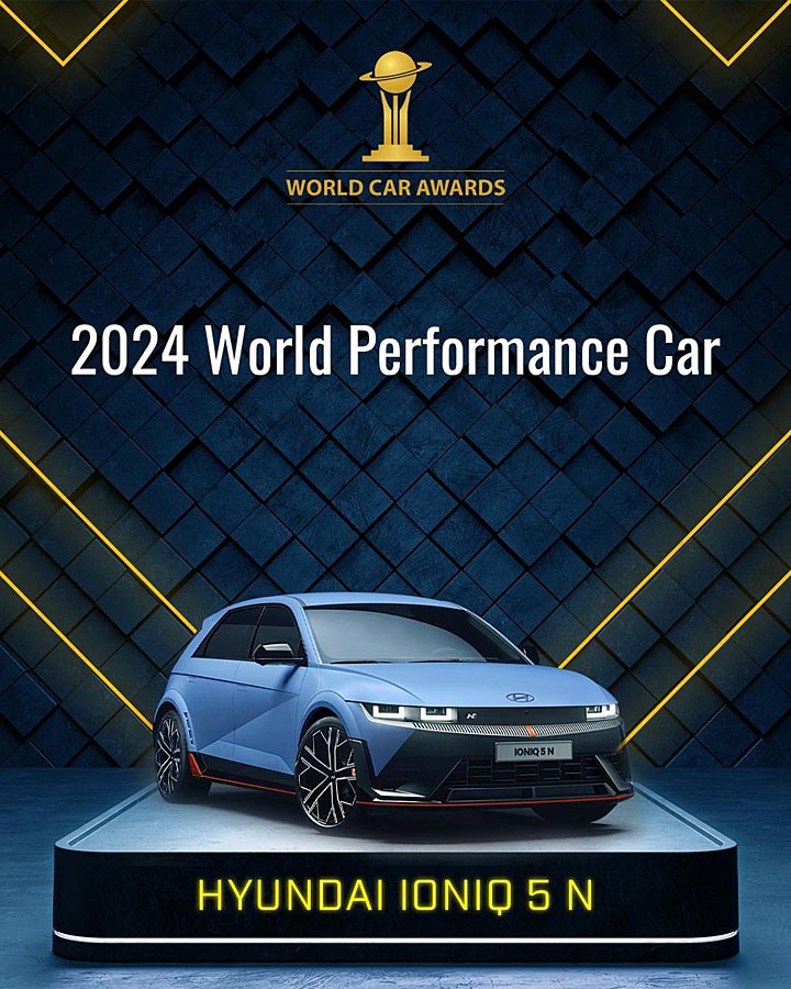 现代车款近几年在 WCOTY 中相当风光,其中 IONIQ 5 和 IONIQ 6 都囊括不少奖项,虽然这届票选光彩稍微被 EV9 抢去,不过在 2023 年 7 月中旬发表的 IONIQ 5 N,其延续同集团双生兄弟 EV6 GT 拿下去年度性能车奖项的气势,在两款 BMW 车型 M2 与 XM 的夹击下脱颖而出、成为新科年度性能车。