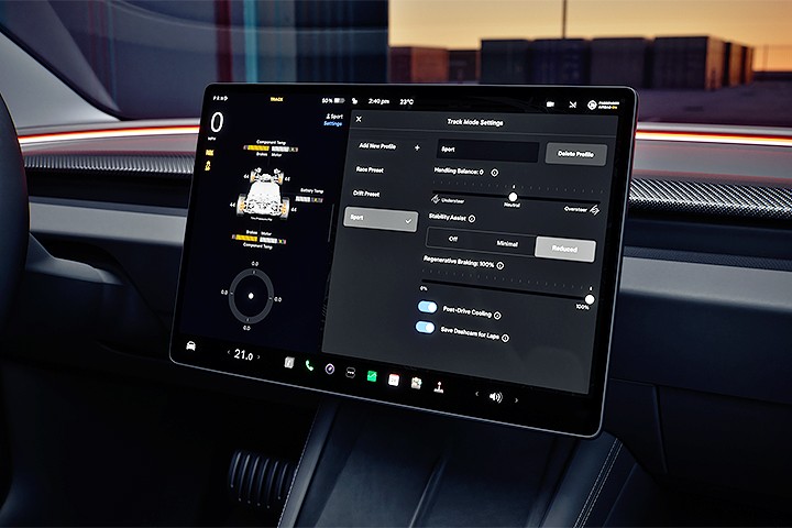 车室设计方面,Model 3 Performance 新增全新跑车座椅,提供更强的支撑性与出色的舒适度,同时具备通风与加热功能。独特的碳纤维编织饰板设计凸显 Performance 车型专属的运动风范。除此之外,车厢标准配备环绕式 256 色气氛灯、15.4 吋高分辨率中央触控荧幕、高达 17 组喇叭、强调媲美录音室质量的音响系统,以及后排 8 吋触控荧幕,让车主在享受极致操驾体验的同时,拥有如移动剧院般的沉浸式体验。