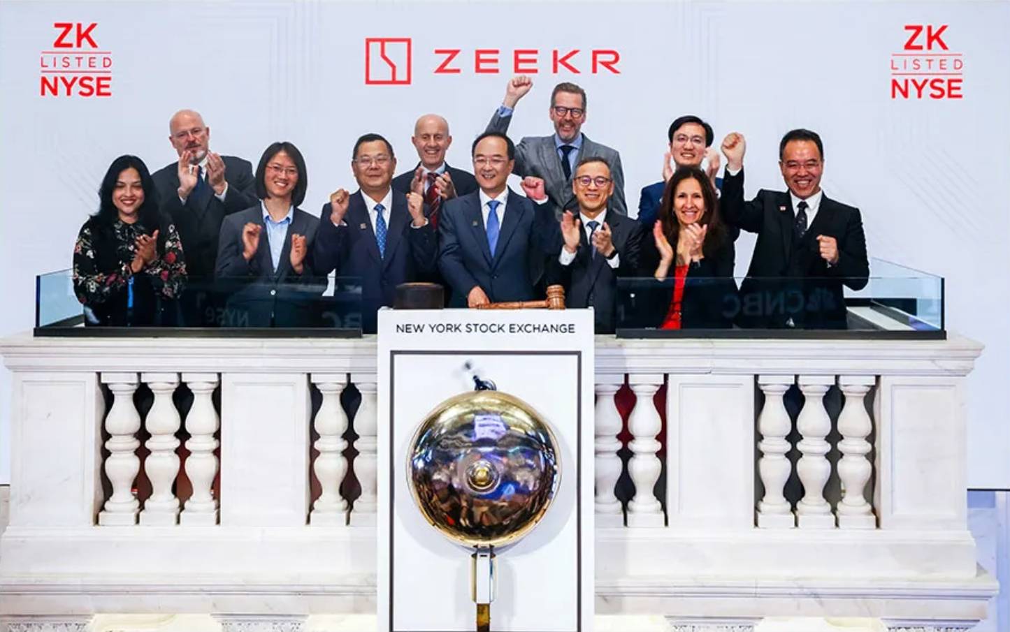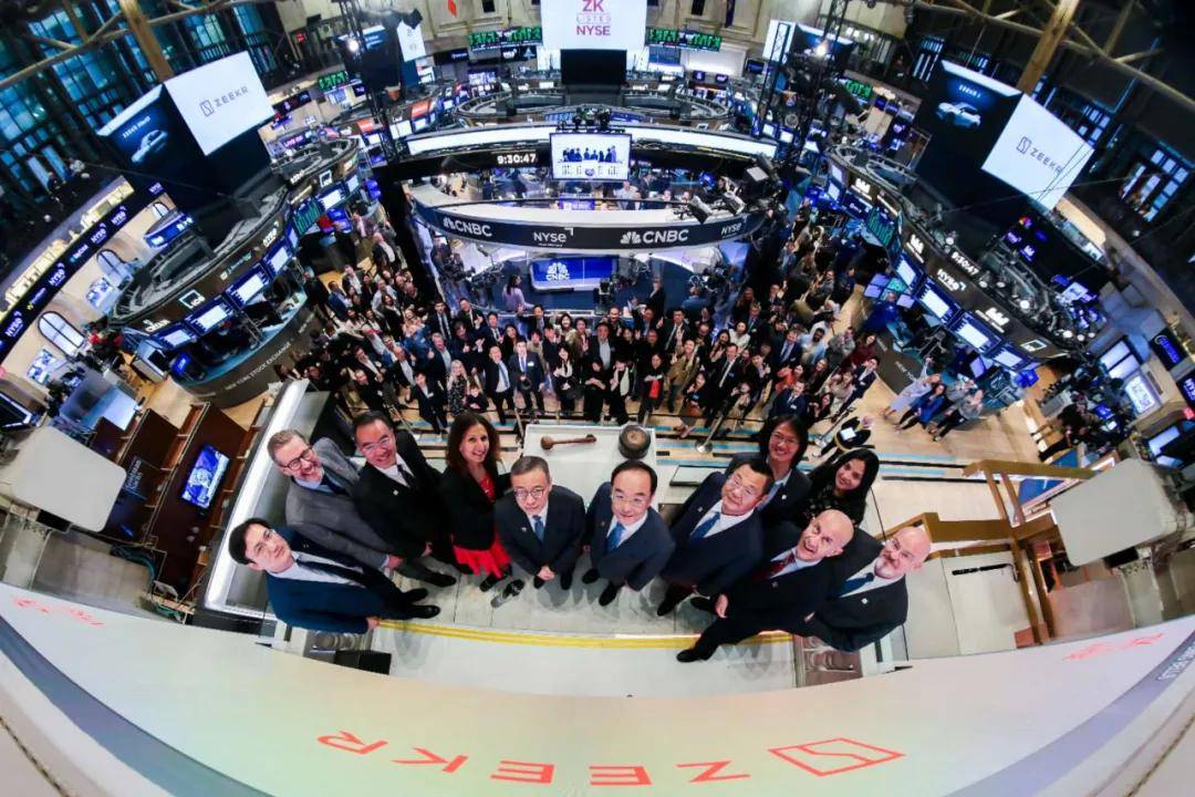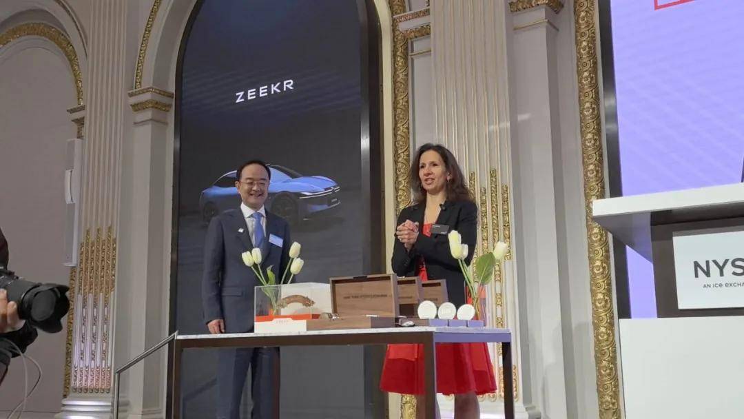美国时间2024年5月10日上午9时半,极氪汽车正式挂牌上市,股票代码为“ZK”,安聪慧在吉利汽车控股有限公司行政总裁及执行董事桂生悦、吉利控股集团CEO李东辉陪伴下,敲响了公司上市的铃声。