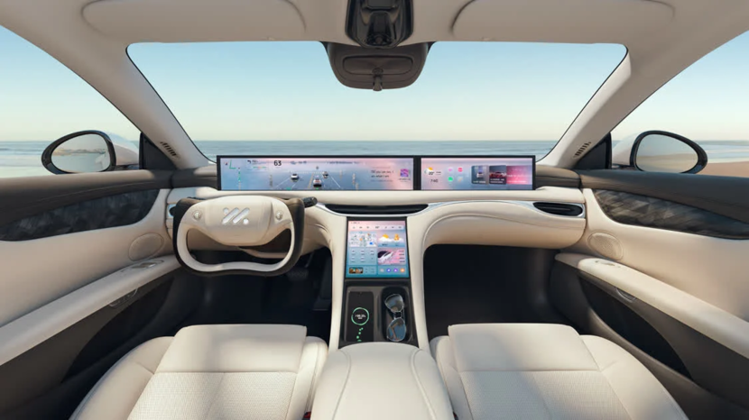 内饰方面,智己L6依旧延用家族式全画幅数字驾驶舱设计,中控由26.3英寸连屏以及10.5英寸触控屏组成,并搭配了半辐式方向盘。另外还配备通风无线充电面板,旁边的储物槽造型也有所调整。材质上,座舱使用了大面积的真皮材质、软性材质以及镀铬装饰条的点缀勾勒,进一步提升了内饰的精致感和豪华感。
