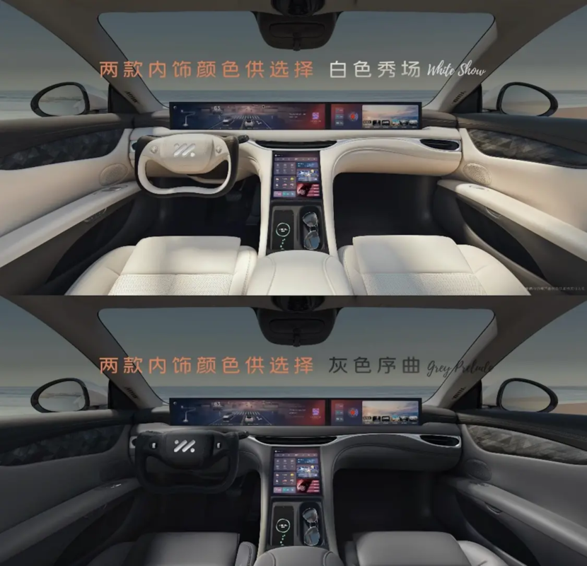 在内饰配色上,智己L6提供两种颜色可供选择,它们是白色秀场和灰色序曲。