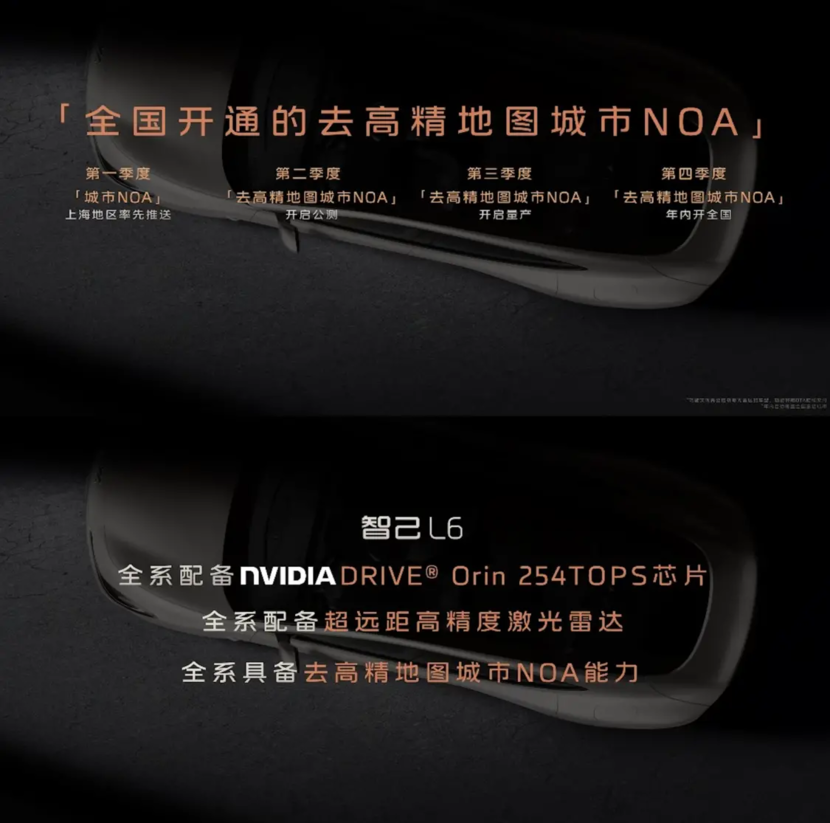 辅助驾驶的传感器方面,智己L6全系标配顶置激光雷达和254TOPS算力的ORIN芯片,这一套硬件组合让智己L6拥有高阶智能辅助驾驶能力。智己L6将于年底实现全国去高精地图NOA辅助驾驶能⼒。