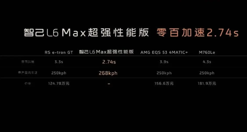 动力方面,智己L6将会提供单电机以及双电机版本,其中单电机版本车型的百公里加速分别为5.6s和4.6s,双电机版最大功率579kW,0-100km/h加速时间2.74s。