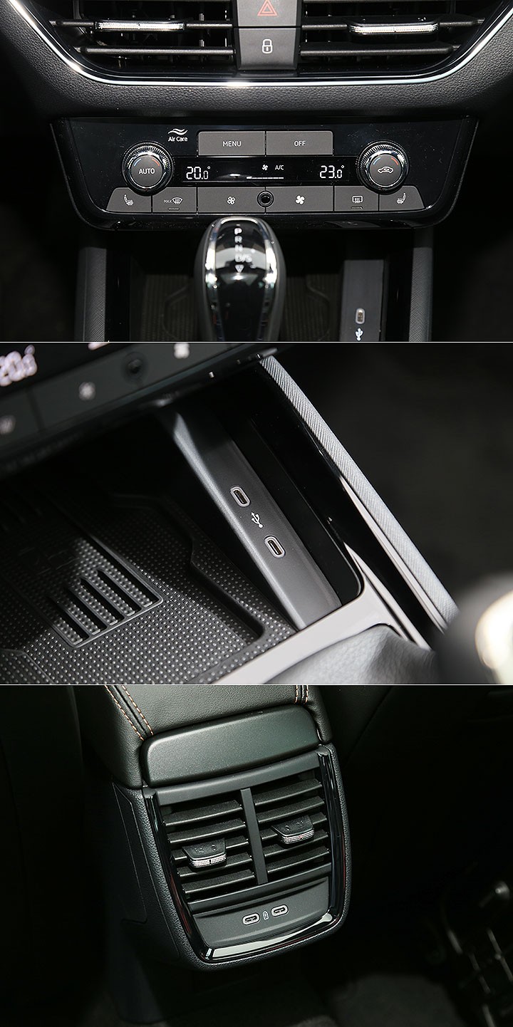 斯柯达特别沟通了中控台下缘的手机无线充电板,以及车内所配置的 Type C 插孔,因为充电功率都进行了提升,手机无线充电板充电功率来到 5W,而靠副驾驶座侧的 Type C 插孔则为 45W,根据了解,Scala 车上共计有 5 个 Type C 插孔,包含前座 2 个、后座 2 个,以及车内后视镜下缘 1 个,除后视镜上插孔维持 15W 之外,其余都已经提升到 45W。