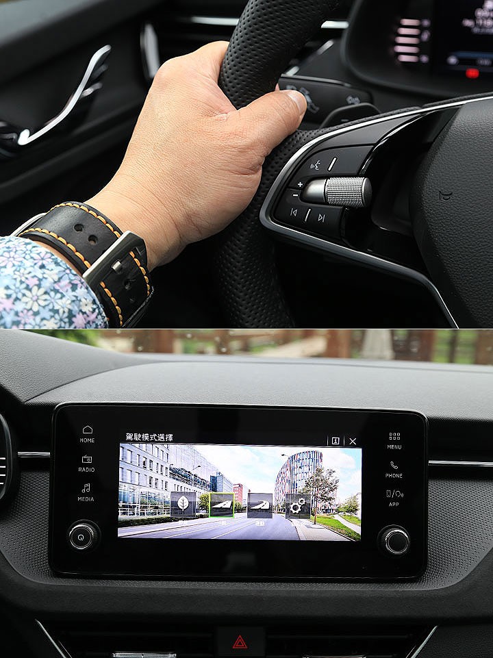 主要是丘陵地形,起伏大且地势陡峭,意味着很多的上下坡路段,甚至很多坡道还相当陡峭,这考验着车辆的扭矩输出,所幸提供试驾的 1.5 TSI 车款,都另行选配了全景式玻璃车顶与驾驭乐趣套件,驾驭乐趣套件内容包含有驾驶座电动调整座椅、驾驶模式选择,以及方向盘换档拨片,后两者在上下坡的驾驶环境中,就提供了不小的便利性。
