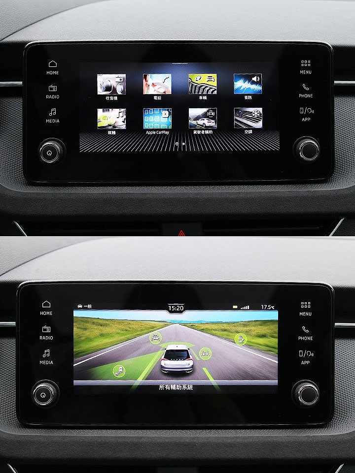 10.25 吋数位仪表与 8.25 吋触控荧幕的组合,猛一看似乎与小改款前相同,但实际上触控荧幕尺寸略为有所增加,从原先的 8 吋来到 8.25 吋,最重要的是车载系统也一样「小改款」,从原先的 MIB3 升级到 MIB3 GP;多功能方向盘也有调整,换上 HOD 电容感应式版本,同时中空台的中央空调系统也加入了风量调整按钮,一改原先小改款前需要透过中控荧幕调整的作法,这也更贴近传统操作界面的习性。
