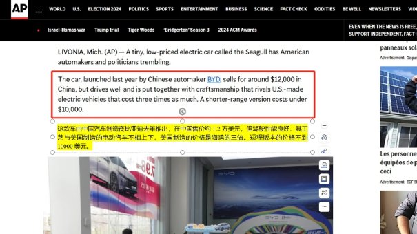 (图为:美联社关于拆解比亚迪海鸥的报)