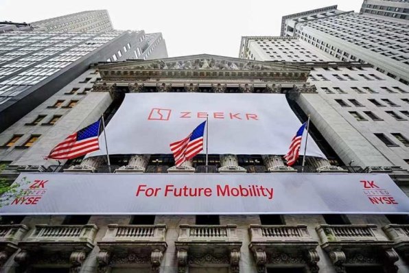 (图为:极氪汽车在纽交所上市宣传条幅)