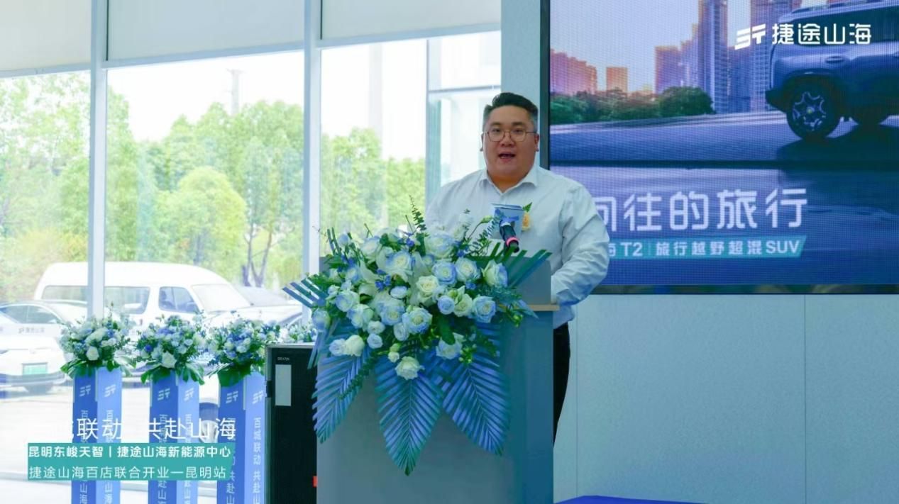 捷途汽车营销公司 云贵大区经理 房轶 先生在致辞中表示:为用户带来更美好、舒适的旅行生活,是捷途“旅行+”的初心和目标。品牌发布至今,捷途用时68个月,完成累计销量1103772辆,持续保持中国新锐SUV品牌增速第一。坚持“旅行+”战略定力,持续释放“旅行+”品牌势能,捷途山海正加速完成新能源渠道全方位布局,以更优质的旅行体验回馈消费者。捷途山海将以更贴近用户的精细化运营和更立体的渠道网络体系,将有温度的服务延伸到全国各地。