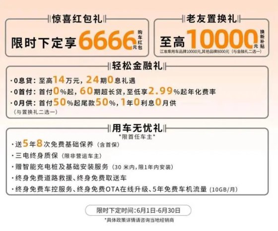 瑞风 RF8以用户共创和价值需求为基石,在产品上打造出8项行业第一,以及“长 智 久 安”四大核心优势,全面超越用户期待。作为备受关注的智能电混MPV,瑞风 RF8智聆版售价16.99万-23.99万元、鸿蒙版售价20.99万-25.99万元。更为关键的是,瑞风 RF8在售价诚意满满的基础上,还推出了惊喜红包礼、老友置换礼、轻松金融礼、服务无忧礼四重购车权益方案,购车至高可享36666元的综合权益,诚意十足。现场还为嘉宾们设置了丰富的试驾体验环节,给大家带来了一场沉浸式、全方位的感官冲击。而凭借出色的驾乘体验,瑞风 RF8也征服了现场用户与媒体,能够充分满足多人家庭对美好出行生活的向往。