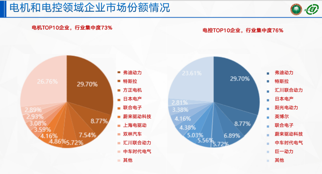 根据我们平台上的统计,从电机到电控的TOP10,目前集中度是越来越高的,尤其是这两年这种趋势更加明显。