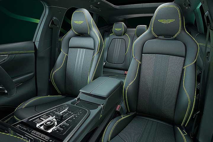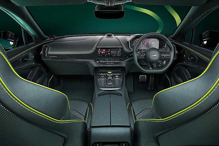 座舱内,DBX707 AMR24 Edition 则是采用 Inspire Sport 运动内装,并有单色 Onyx black (玛瑙黑) 或 Onyx Black (玛瑙黑)/Eifel Green (艾菲尔绿) 的两种配色可选,且配有 Lime Green (莱姆绿) 的头枕厂徽刺绣、滚边与缝线,Q 部门还提供非常丰富的订制选项,例如:碳纤维饰板、镀铬铝合金细节等供准车主自行搭配。