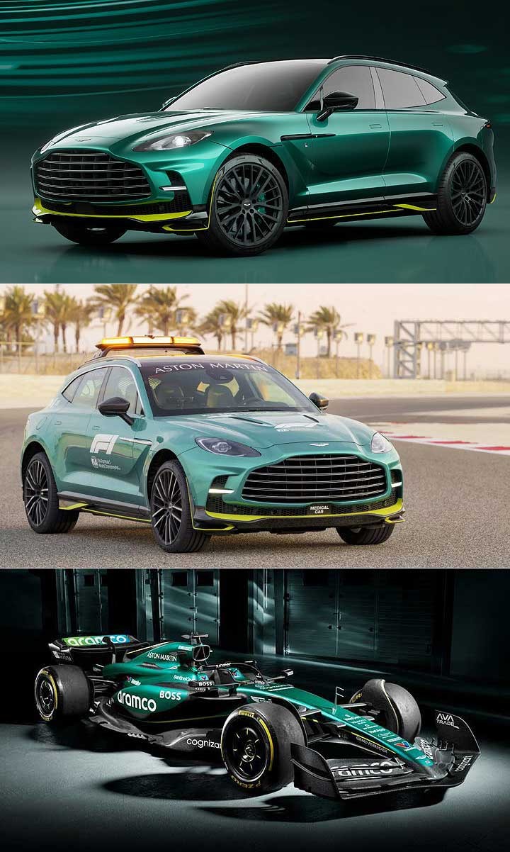与 2023 年 5 月推出的 DBX707 AMR23 Edition (图上) 一样,DBX707 AMR24 Edition 的车身涂装灵感,也是来自目前 F1 的官方医疗车:DBX707 F1 Medical Car (图中) 和现役自家 F1 赛车:AMR24。