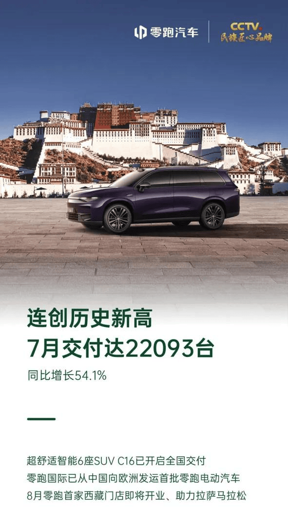 值得一提的是,在加速驶向国外的过程中,零跑汽车在国内市场同样取得了不错的成绩。2024年7月,零跑汽车交付达22093台,连创历史新高;1-7月累计交付达108789台,实现下半年的火热开局。凭借深厚的产品实力和技术优势站稳中国市场造车新势力前三。
