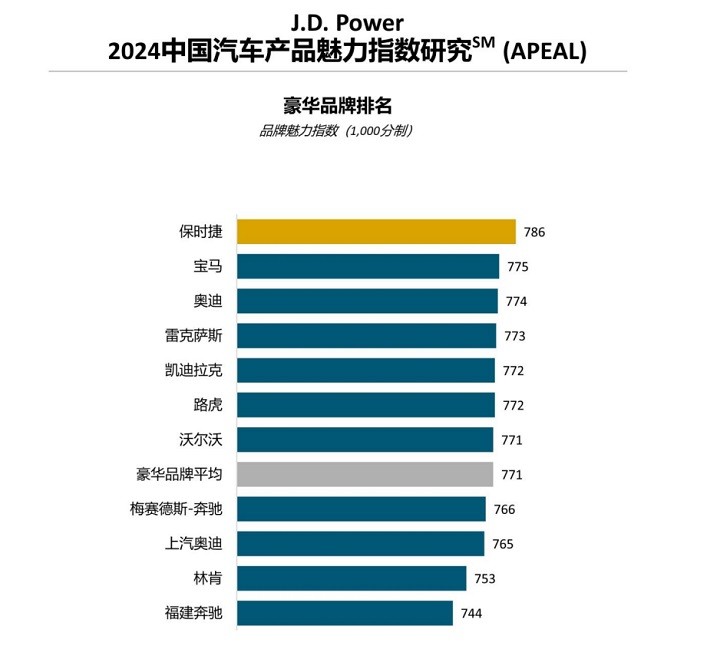 美国 J.D.Power 先前在 7 月底左右时公布 2024 APEAL 新车魅力调查的结果,品牌部分涵盖豪华及一般的情形下,最终是由保时捷来拿下冠军,至于车型部分则是宝马7系来夺得;而在近期中国 J.D.Power 也公布新年度 APEAL 新车魅力调查的成绩,737 分 ( 满分 1,000 ) 的整体满,不过燃油车型成绩却是 2020 年来新高,新能源车评分同样也有所提升。
