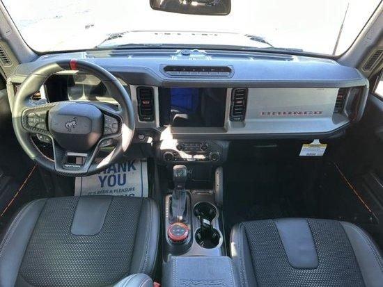 23款福特烈马Bronco3.0T四门Raptor猛禽车内采用硬朗的设计风格,中控台设计主次分明且有层次感用料也厚实。多功能方向盘造型运动,中控屏幕采用内嵌式的设计增添了车内的时尚感,按键布局合理档把设计精致座椅宽大厚实空间宽敞实用性强。