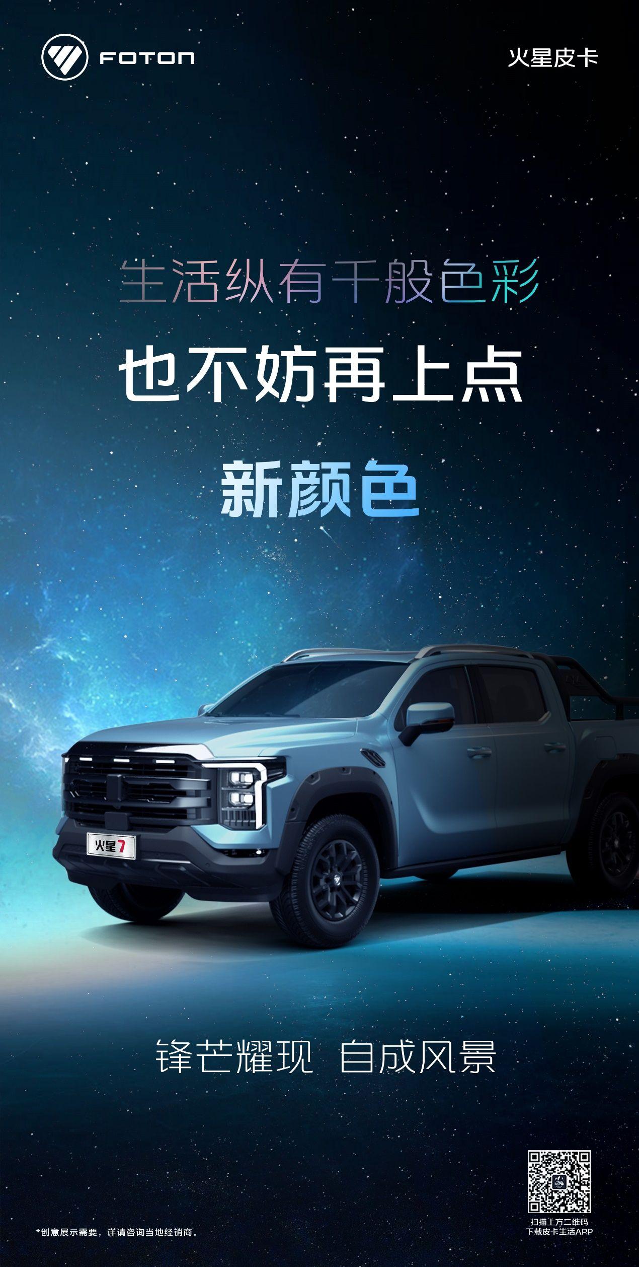 火星皮卡,就是要让皮卡的“商乘野”不再有隔阂,一心只为满足用户多元化需求。天生皮卡,生活由“我”不由它。长久以来火星皮卡联合各圈层,为皮卡用户带来多元个性、更丰富有趣的皮卡新体验。而此次火星皮卡,以“星芒青”引领色彩潮流,不仅重塑了皮卡行业的视觉标准,更为用户带来了前所未有的驾驶体验与生活方式的革新。共创皮卡多元化生活方式,去追求、去实现心中的热爱与梦想,探寻万种人生。