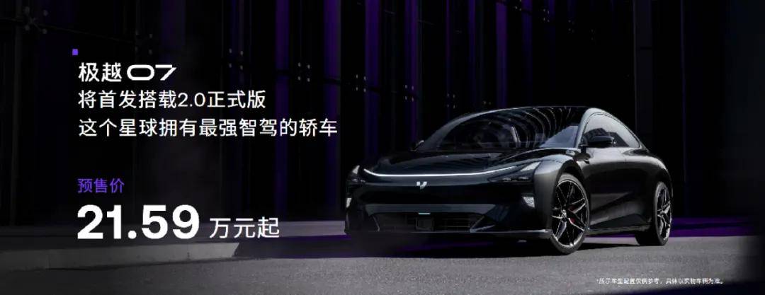 极越07长宽高为4953/1989/1475mm,轴距为3013mm,定位于中大型轿车,预售价21.59万元起,9月10日正式上市。极越ASD高阶智驾包买断价为2.99万元,限时优惠价4999元,按月订阅价为599元/月,所有新老车主均可免费赠送3个月。针对已经买断纯视觉高阶智驾的老车主,极越将进行“补差价”。