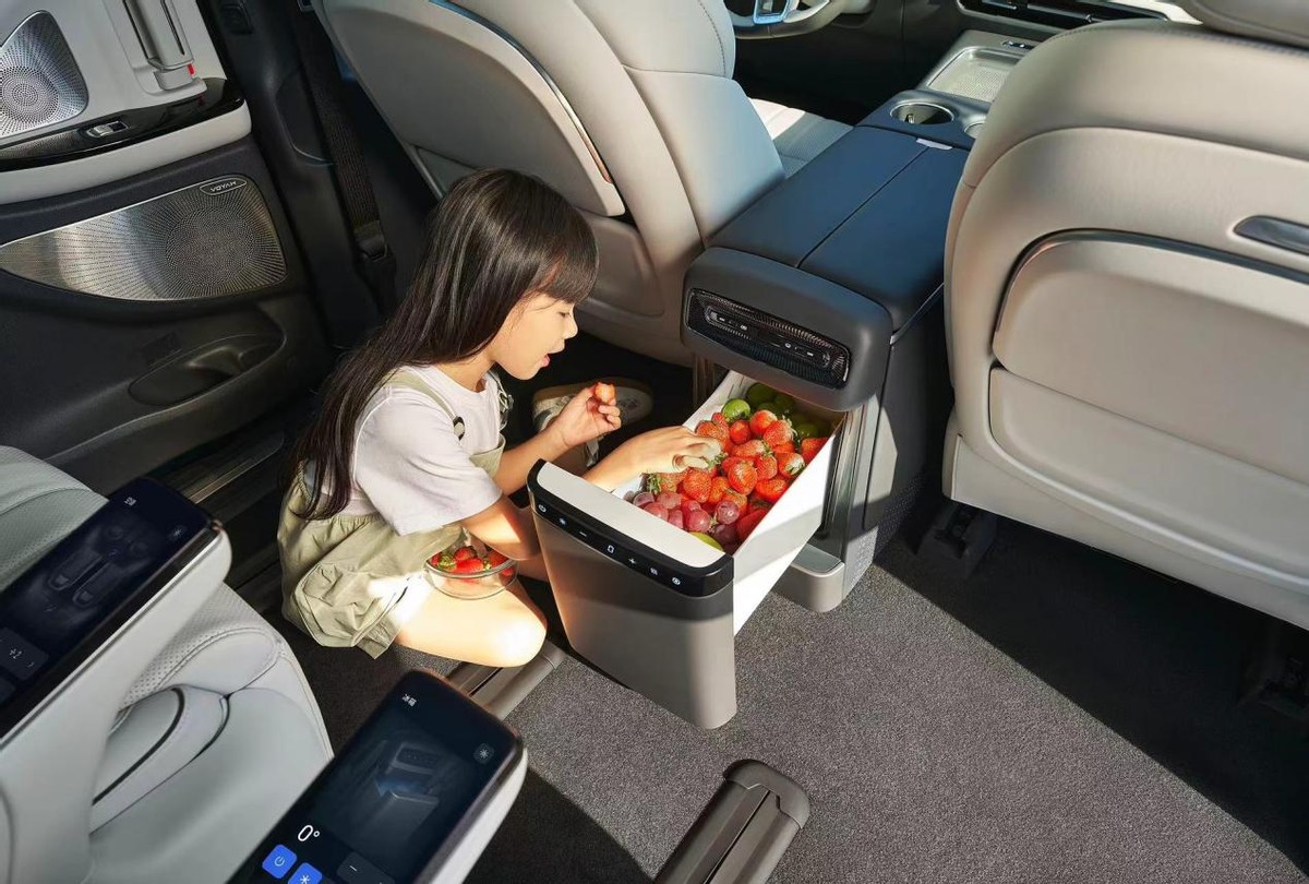13L双开门冷暖智能冰箱实用性很高,可实现-6°到50°的温区。另外更值得一提的是智能魔毯空气悬架在开门的同时会自动降低底盘高度,二排座椅同步向后移动迎宾,所以即使日常有商务用车需求也非常有排面。