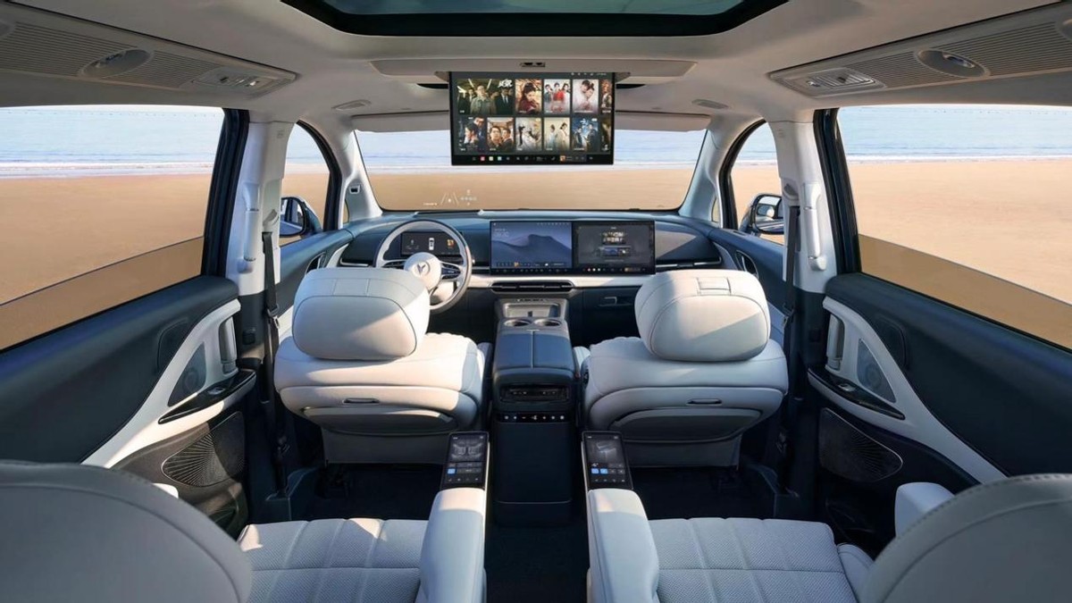 内饰方面新车采用9块屏幕8屏联动,顶级的8295P芯片功能更加强大,可支持AI大模型,体验感直接顶满。二排过道宽度180mm,车内高度超1米3,小朋友可以做到在车内自由行走。42度的靠背后仰功能以及SPA级 按摩功能舒适度很高,第三排座椅靠背角度可达同级别最大的122°,且支持三排七座座椅及靠背加热功能。