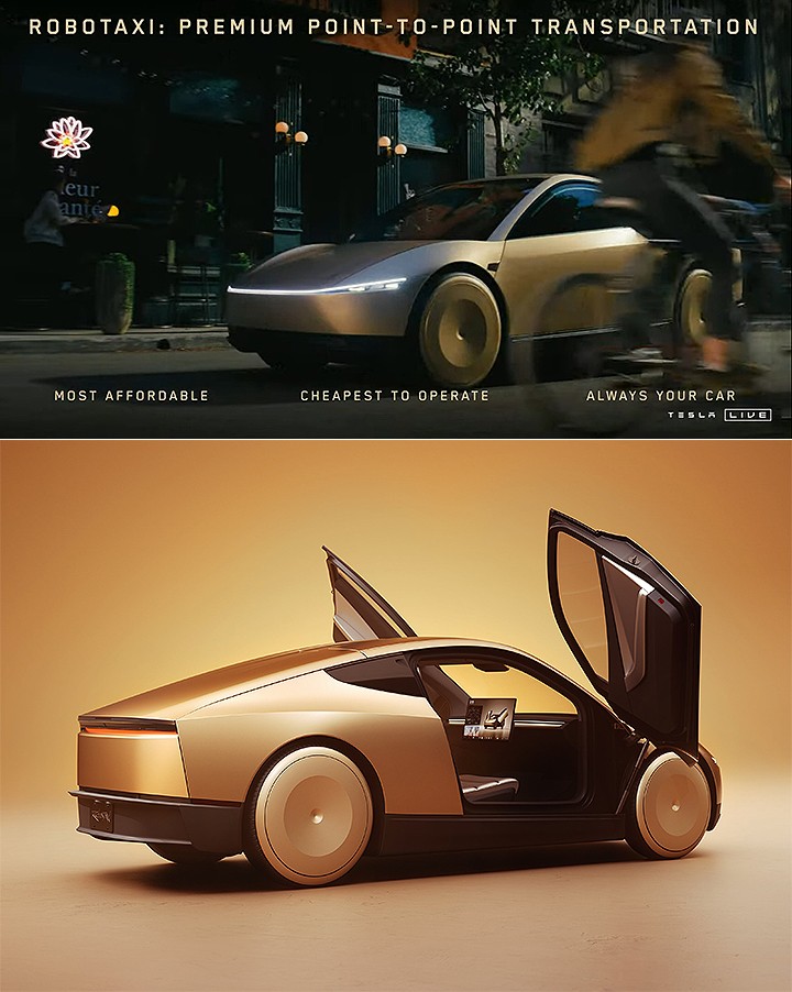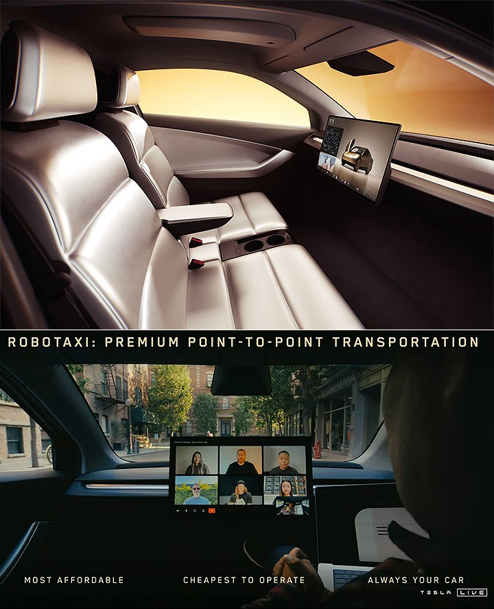 而 Elon Musk 也表示现行状态下人类在交通与通勤交通花费太多时间成本,如每周有 168 小时,但实际上家用汽车的平均使用时间的可能平均不到 10 小时,而 Cybercab 的 AI 大数据智慧分配车辆,不仅能大幅节省不必要的雍塞情形,大量部署下更能让一般民众无须以自家车辆在 A 点至 B 点需要停入停车场,Cybercab 问世可大量减少停车空间的需求、进一步让许多空间由停车场转变为公园绿地。新车售价预计落在 3 万美金内,并在加州与德州超级工厂同步生产,但预计量产的时间点会是在 2026 年。