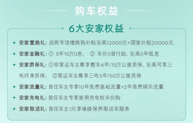 在发布会现场,不仅有快乐的“无忧绿”新车色,更有让观众开心到全场沸腾的新车价格。全新启辰VX6大平层限时权益价:450出行 11.29万元;450 Air 12.59万元;520 Pro 13.59万元;520 Max 14.59万元。同时可享受启辰专项至高补贴12000元+国家补贴20000元,3年10万0息,非运营车主整车6年15万公里质保,至高三电终身质保等丰富的政策权益。