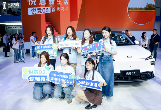 11月15日,中国一汽新款城市纯电SUV——悦意03于第22届广州车展3.2馆惊艳首秀。作为一汽奔腾新的新能源产品家族的首款车型,悦意03采用“时空光影美学”设计理念,是一款为年轻小家庭用户而生,亲和、松弛、时尚、活力的A级纯电SUV。满足年轻人对美好生活的向往,悦意03还将致力于打造能耗、空间、智能等三个第一,成为用户松弛感出行TOP之选。