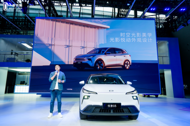 0.618黄金轴长比,优雅修长又富有韵味;蝶翼流光前脸,开放而灵动;蝶翼光眸前大灯及蝶翼掠影尾灯,柔和而醒目,散发出东方美学的典雅气息;光影阶梯前格栅,尽显张力与层次感;凌波跃动腰线,时尚而优雅;星旋流光轮毂,新锐造型带来与众不同的先锋感。悦意03的光影之美,还实现了设计美学与风阻性能的极限平衡,达成全球量产车同级超低风阻系数。