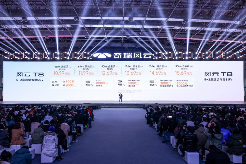 硬核实用派,定义国民车!2025年1月11日,奇瑞风云T8全球预售发布会在安徽芜湖宜居国际博览中心正式举行。作为奇瑞倾力打造的5+2座超级电混SUV,风云T8搭载C-DM5.0混动系统,不仅拥有更长、更强、更实用、更安全的四大核心优势,更以越级的产品价值,成为了国民用车的更优选。