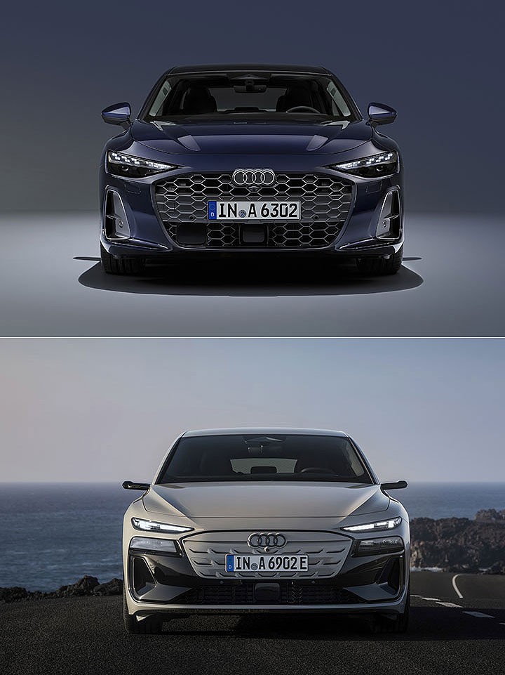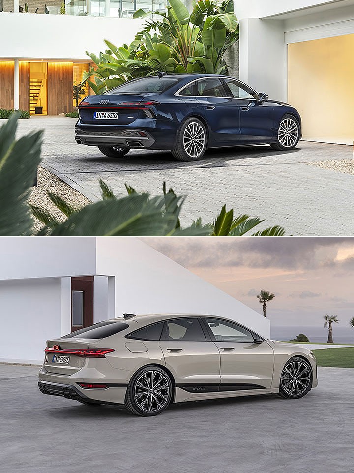 虽然奥迪重新诠释后的命名规则,不再有纯电数字的命名,例如油与电都会有 A6 的设定,但 A6 e-tron 与 A6 之间除了分别是 PPE、PPC 平台所打造,在外观造型上也有些许不同识别,最明显的是灯组设定不同,从头灯看过去会发现,A6 e-tron 采用分离式灯组设计,而 A6 则是一体式呈现,同时水箱护罩位置与轮廓样式也有些许不同,车尾灯组则是相仿的轮廓型式,但 A6 e-tron 以更简约的方式呈现。