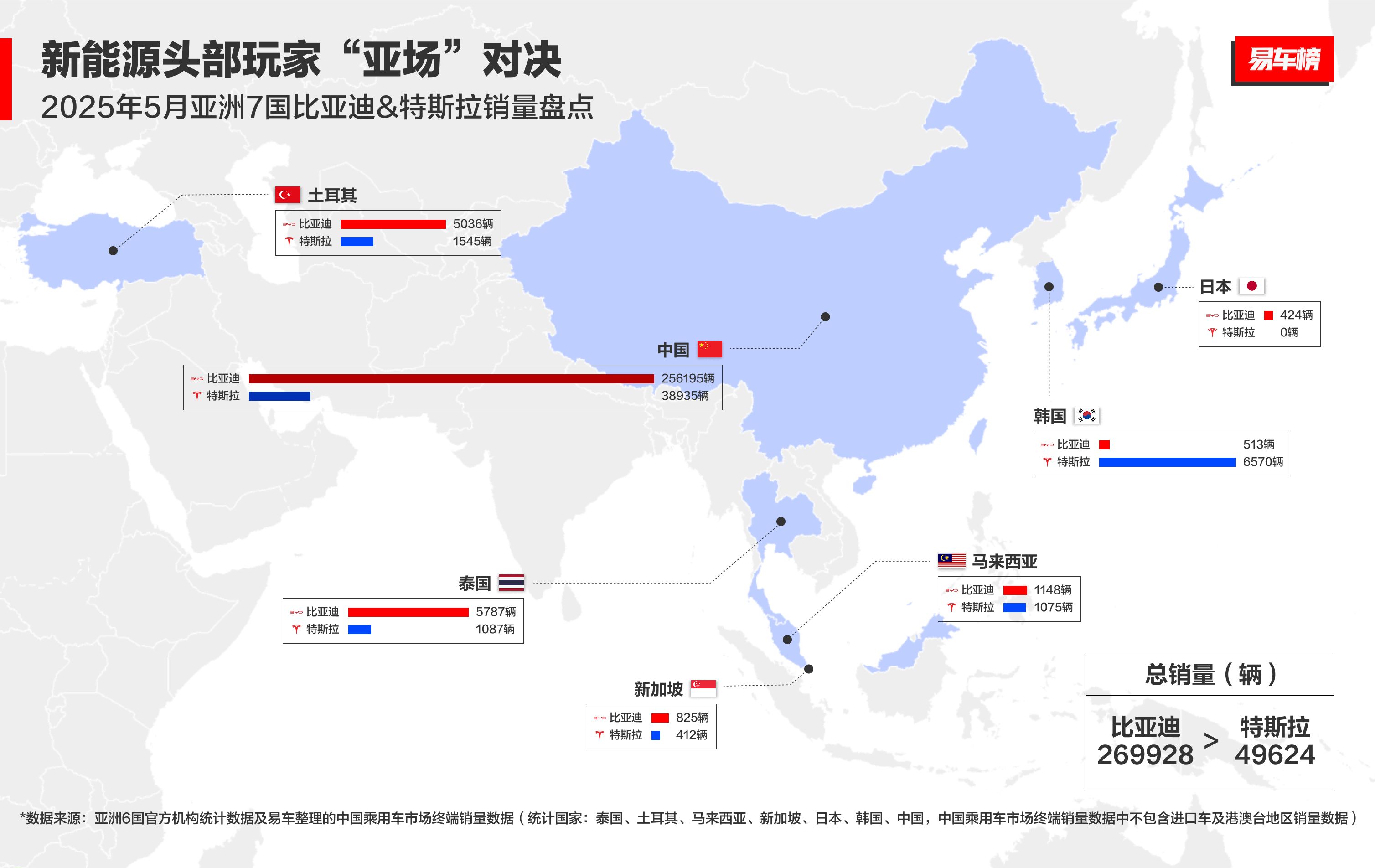 在新加坡,比亚迪蝉联2025年1-5月全品牌销冠;马来西亚销量反超特斯拉;泰国持续书写"现象级"战绩;甚至在最排外的日本市场,海狮07EV助力比亚迪首度杀入进口车销量前十。