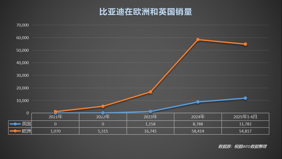 "曾经有人说比亚迪在欧洲‘毫无存在感’",一位比亚迪海外负责人指着早期自媒体唱衰报道感慨。而今,比亚迪用硬实力回击:2025年欧洲新能源市占率突破6%,1-4月销量达5.5万辆,接近2024全年总和!英国前4月销量已破万,德国连续两月压制特斯拉。
