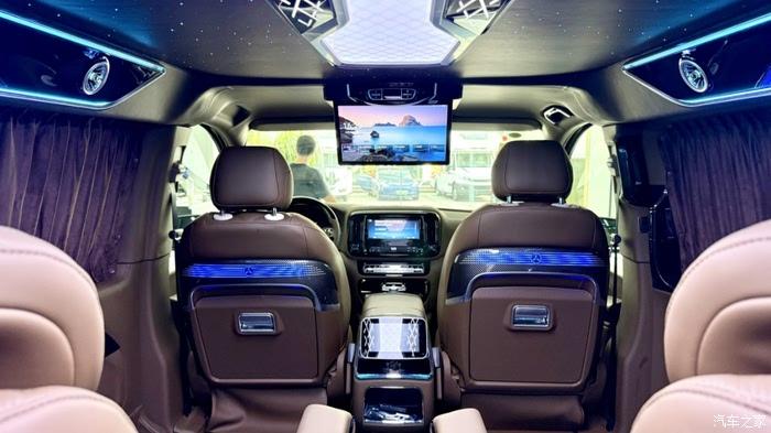 中排两张独立的航空座椅,无疑是车内的亮点之一。它们不仅具备多项智能调节功能,如通风、加热、按摩、腿托、腰托等,还支持零重力模式和360度旋转。在长途旅行中,乘客只需轻轻按下按钮,就能将座椅调整到最舒适的状态,享受如同头等舱般的舒适体验。座椅之间的过道宽敞,方便乘客自由走动,不会有丝毫的局促感。座椅表面的摩卡棕真皮材质,经过特殊处理,不仅触感更加柔软,还具有出色的耐磨性和透气性,即使长时间乘坐也不会感到闷热。
