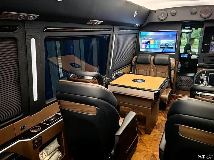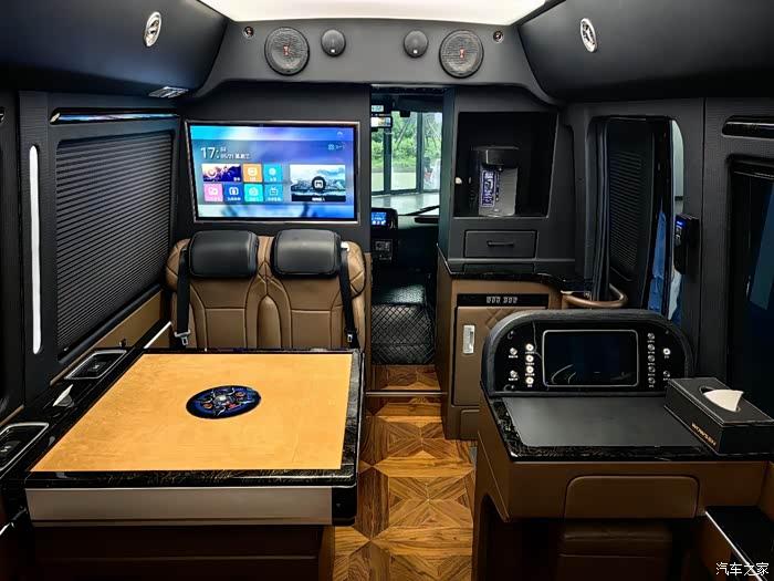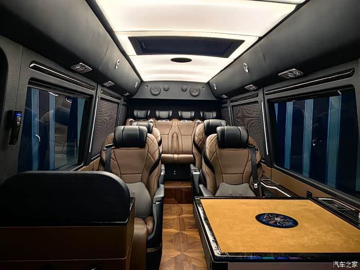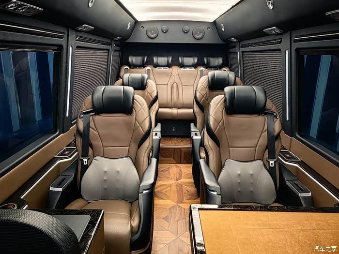 车内的内饰氛围同样奢华。深色的内饰基调搭配金属质感的饰件,营造出一种沉稳而不失格调的环境。车内还配备了独立的空调系统,可分区控制温度,确保每一位乘客都能处于最舒适的温度环境中。此外,车内还设有丰富的储物空间,方便乘客存放行李和物品,让车内始终保持整洁有序。