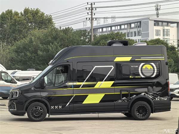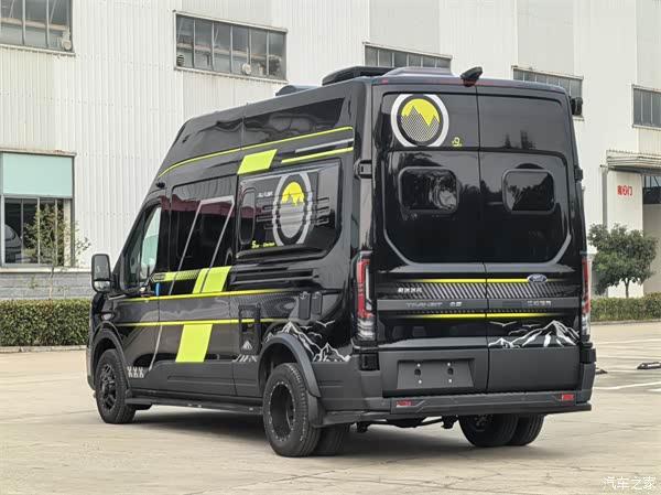前脸独特的“满天星光”进气格栅,宛如夜空中闪烁的繁星,璀璨夺目,搭配造型犀利的LED大灯组,照明效果出色,为夜间行车照亮前路,同时极大提升整车辨识度,增添科技感与时尚感。精致的尾灯、雾灯以及首创的贯穿式高位制动灯相互配合,全方位保障行车安全。车顶美规铝合金行李架,实用又美观,可放置行李、自行车等旅行装备,拓展储物空间,也为车辆增添动感与越野气息,尽显户外探索气质。车身右侧熏黑遮阳棚,采用外凸式设计,带有户外照明灯带,驻车时展开遮阳棚、打开灯带,瞬间营造出温馨舒适的户外休闲空间,让人尽情享受户外美好时光。车辆尾部对开门设计,方便拿取大型物品;门上固定的铝合金爬梯,便于清理车顶和放置行李;右侧车门处外置储物仓打开可变形为柴油灶,满足户外烹饪需求,为旅途增添烟火气息 。