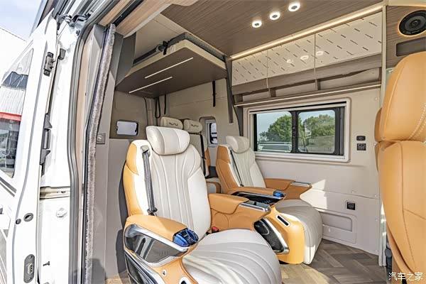 车内的核心亮点,是两张奢华至极的航空座椅。采用顶级皮革材质,触感柔软细腻,透气性极佳。座椅支持多角度电动调节,靠背、腿托、头枕等部位可根据需求自由调整。同时具备通风、加热、按摩等功能,即便长途旅行,身体也能得到充分放松,仿佛置身飞机头等舱。座椅设计严格遵循人体工程学原理,有效减轻旅途疲劳,为出行提供极致舒适体验,无论是商务出行高效洽谈,还是家庭旅行惬意休憩,都能完美满足需求。搭配可升降实木茶几,品茶聊天、商务会议皆能营造舒适便捷氛围。再加上普通座椅,整车核载4 - 6人,满足不同出行人数需求。部分版本还配置车载电视、由BOSE扬声器、低音炮、蓝牙功放组成的房车音响系统,打造高品质移动影音娱乐空间,让旅途不再枯燥乏味,随时随地享受视听盛宴。