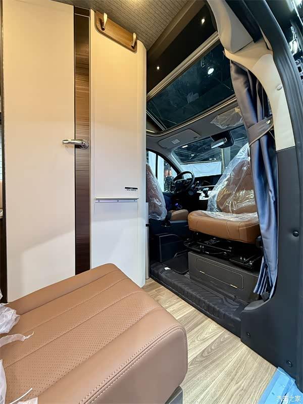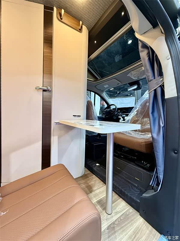 会客区采用单人可调节座椅搭配可移动带旋转副桌板的布局,灵活多变。将副桌板展开,与旋转后的副驾驶座椅形成完整会客区,满足休息、工作、娱乐等多元需求。在这里,你可以与同伴惬意地品茶聊天,分享旅途中的趣事;也可以打开笔记本电脑,处理一些工作事务;还能在闲暇时光,与家人一起玩游戏,享受温馨的家庭时光。侧面和顶部的侧窗以及天窗,保证自然采光充足,让车内明亮通透。中门处配备防蚊虫纱窗,既通风又防蚊虫。