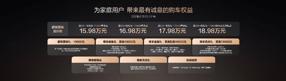 此次,唐DM-i智驾版 175KM长续航版共推出3款车型,售价17.98万~19.98万元(10月31日前完成购车可享10000元置换补贴)。同时,比亚迪还为用户准备了包含置换补贴在内的至高价值4.3万元盛唐礼遇。