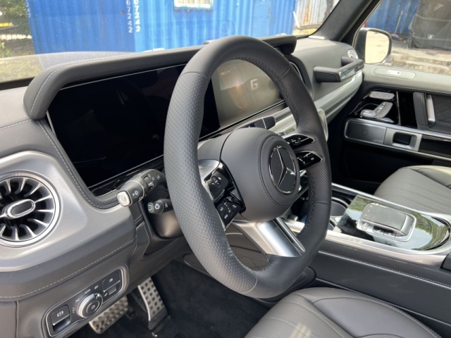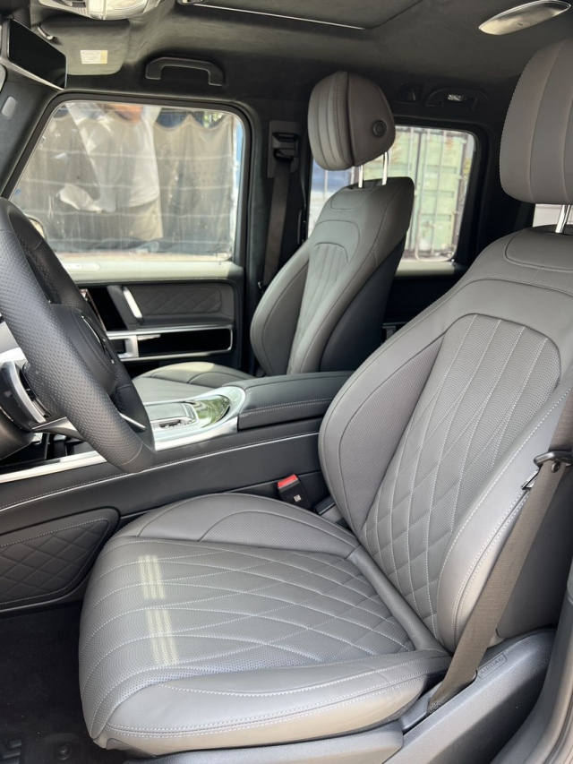 2025款奔驰G450d柴油3.0T选配: AMG运动组件 (20寸熏黑铝合金轮毂 加宽AMG轮眉 不锈钢侧踏板 不锈钢备胎罩 几何多光束大灯 刹车卡钳Mercedes benz 标识) 夜色组件升级版 高光泽黑色涂装(大灯 转向灯 中网 后备胎罩 后视镜 车标 车身 ) 舒适套餐 (无钥匙进入 无限充电 冷热杯架 ) 寒冷包 (方向盘加热 风挡加热) 高级内饰组件 (天窗 仪表台上部真皮包覆 负离子空气系统 柏林之声音响 ) 主动多轮廓座椅组件 (座椅通风 按摩 动态支撑) 尊贵内饰组件 (真皮包覆仪表台 真皮包覆门板 真皮包覆门把手 手工定制菱形格座椅 DINAMICA鹿皮顶) 科技组件 (主动驾驶辅助(雷测)360环影) 阻尼悬架 车身同色备胎罩 宽屏显示(触摸屏) 大油箱 后排隐私玻璃 拖钩 三把钥匙 带遥控预热等