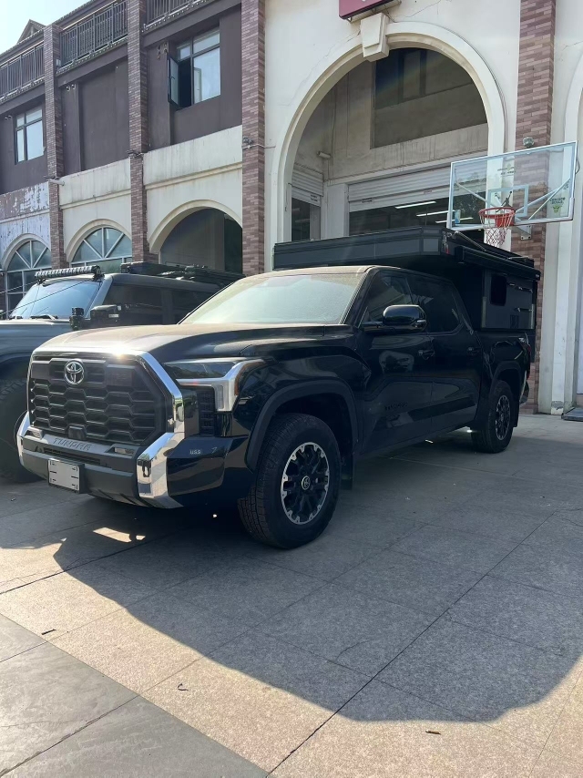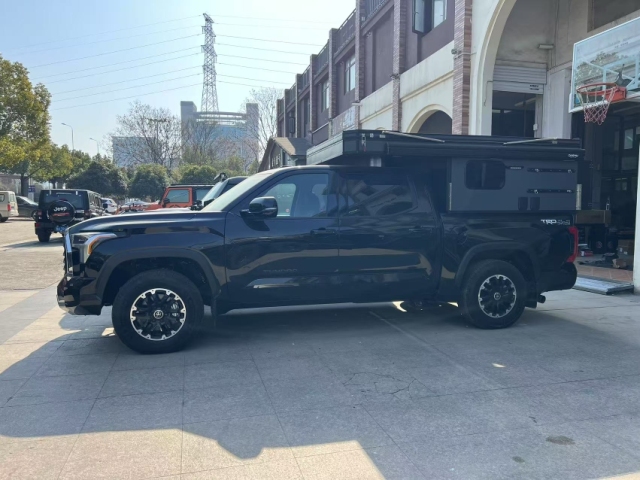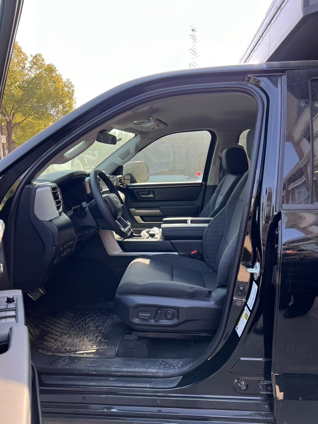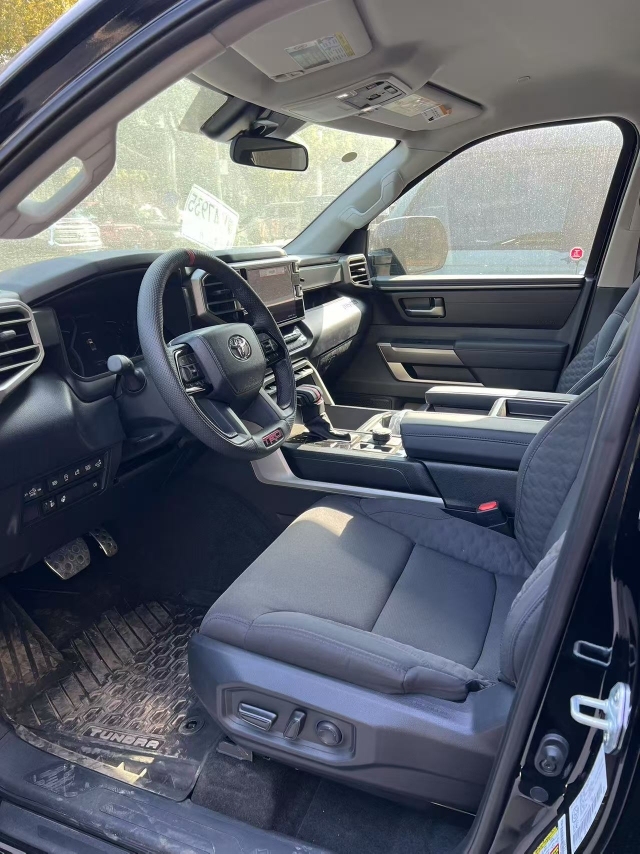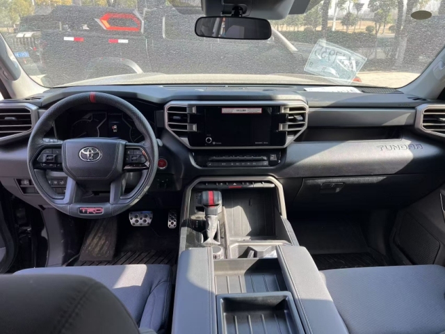 坦途SR5 TRD旅居车 24款黑/黑 配置:前排座椅加热,织物座椅,8项前排座椅调节,双区自动空调,加热真皮方向盘,真皮档把,TRD贴花,TRD 前格栅,TRD OFF Road越野减震器,TRD加热方向盘,TRD真皮档把,盲点监测,自动停车辅助,下坡辅助,蠕行,MTS多地形选择,后差速锁,电子后视镜,18寸TRD越野轮