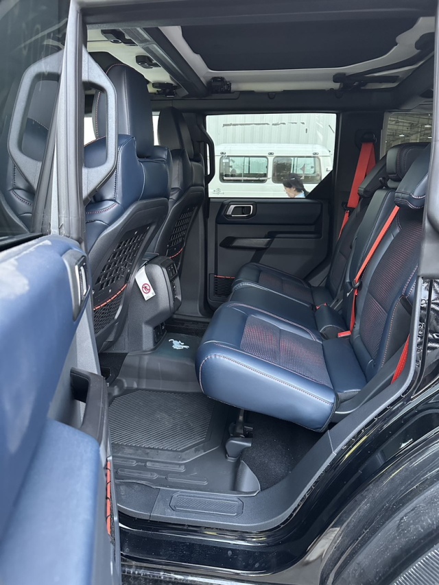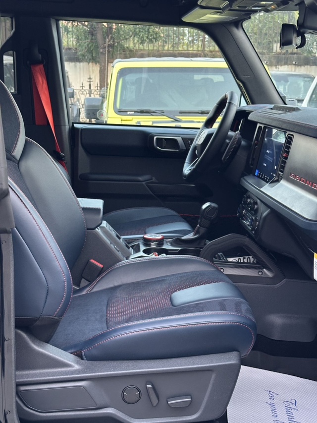 25款福特烈马Bronco3.0T四门Raptor猛禽设计兼顾了功能和奢华,座椅由优质皮革饰边材料制成,可加热和冷却,以提供最大的舒适度,仪表板配备一个大型高分辨率触摸屏显示器,作为卡车信息娱乐系统的中心,该系统包括AppleCarPlay和AndroidAuto兼容性等功能,以及内置导航系统,Raptor还拥有高品质音响系统和360度摄像头系统,以增加视野。